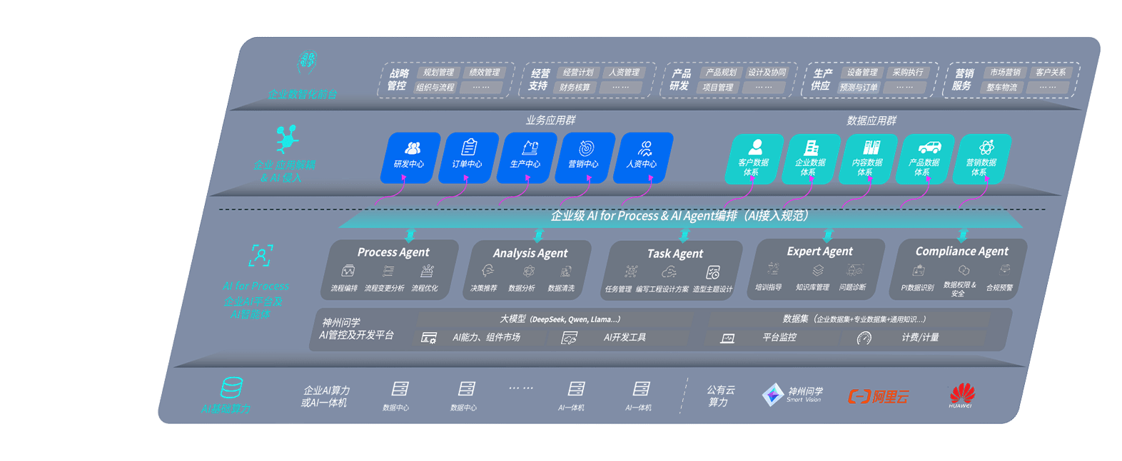 乐金城问学智车解决方案是一套基于AI技术的汽车行业智能化系统,,,,覆盖从底层算力到顶层AI应用的全栈方案。。。方案由算力层、、、、模型层和应用层组成:算力层,,,,方案支持多种一体机配置,,,,具备云端灵活部署、、、、多云适配以及动态优化计算资源的能力;模型层,,,乐金城问学平台版提供了企业级AI应用一站式构建与管理平台,,,支持基于后训练强化技术的汽车企业专属模型的训练、、评测和运营;应用层,,,乐金城问学DeepSeek版提供包括超级员工、、、智能招采、、、智能营销、、、智能客服、、、、AI for BI等一系列解决方案,,,可助力汽车行业实现数字化转型,,,,让管理更智能、、、响应更敏捷。。