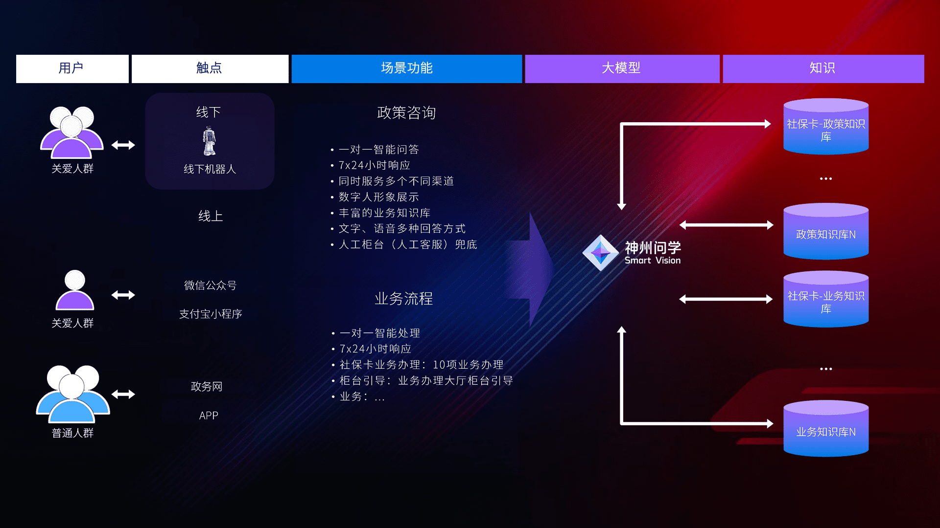 • 线上线下全覆盖:线上提供微信公众号、、、、支付宝小程序、、政务网、、、、app多种渠道,,,,与线下机器人形成完整服务体系。。。。
