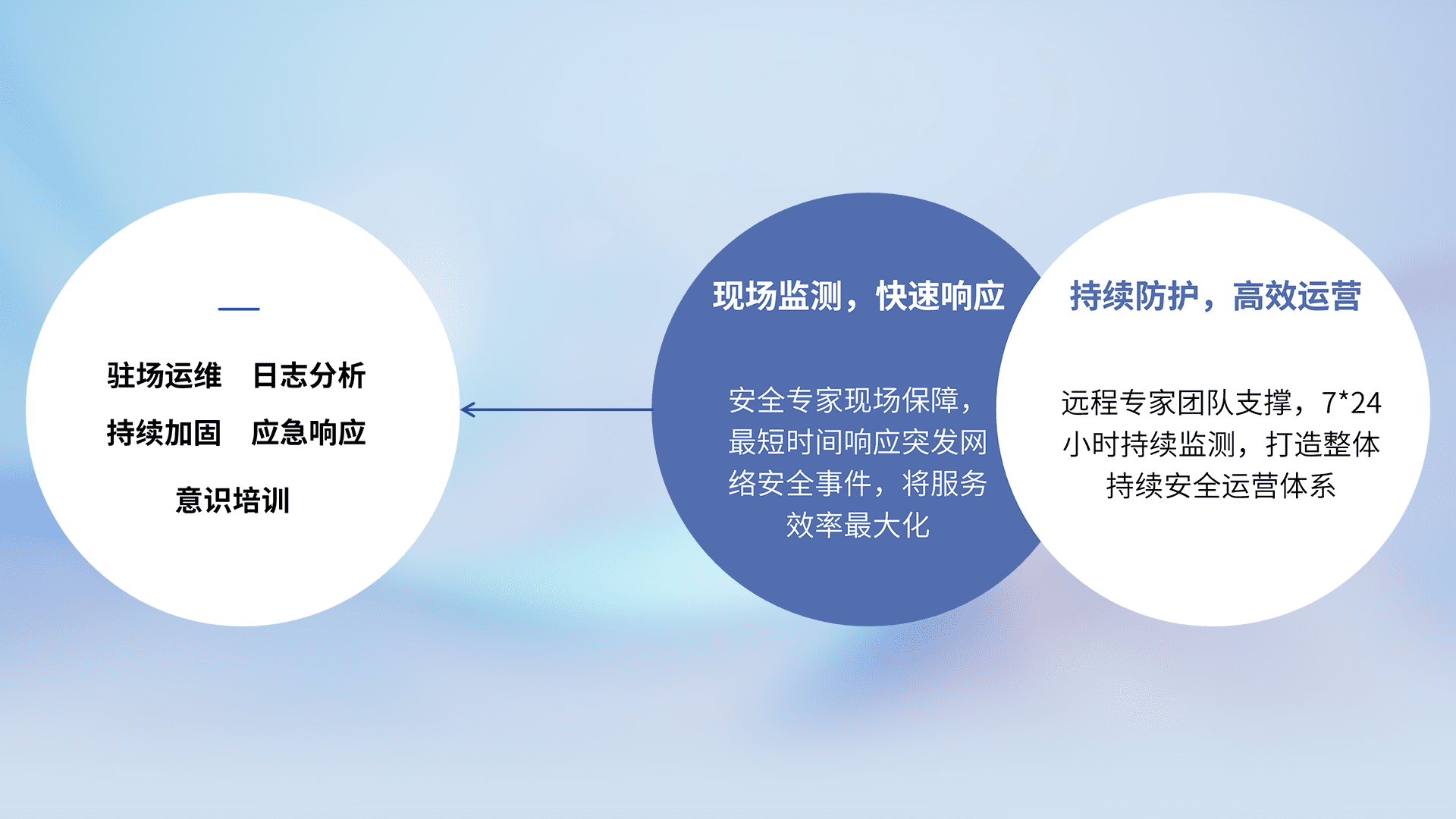 针对客户行业特性,,,提供专属的一站式安全管理服务,,,,帮助客户全面感知网络空间威胁,,通过安全专家的线上、、、线下防护支持,,,实现风险闭环,,,,将安全保障常态化,,,为客户打造常态化安全运维运营服务。。